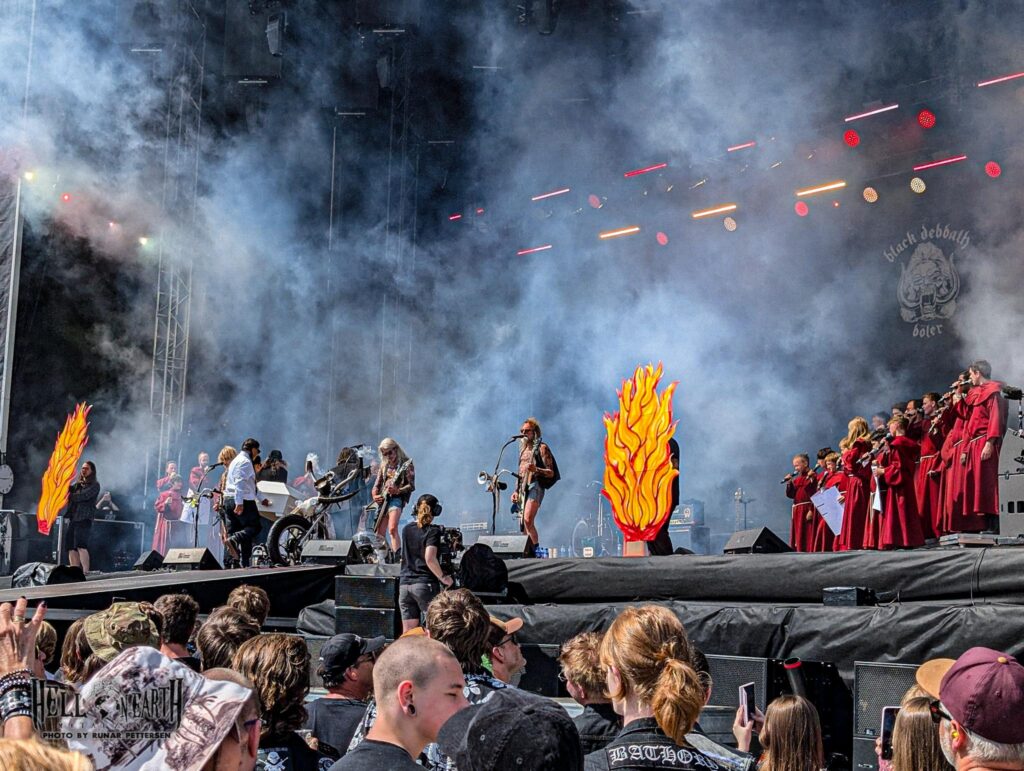 Black Debbath have made a habit of opening Tons of Rock for several years now. A great start, most would say—including me—because Black Debbath are a Norwegian national treasure. One of the few bands in the world who actually manage to blend humour and metal perfectly. This year they added a twist by inviting the St. Hallvard lads’ choir on stage. The choir didn’t exactly elevate the experience for me, but it was still fun to see the kids enjoying themselves up there. “Nei til runkesti på Ekeberg” is a solid way to kick off a gig, seeing as we’re on Ekeberg after all. As usual there’s plenty of banter between songs; the only downside is that some of the jokes are starting to repeat a bit, even if there’s a smidge of new material here and there. Either way, when the official festival song closed the set, the entire field joined in on “Tons of Rock”. Fair to declare that once Bøler’s finest have lifted the mood, it finally feels like the festival is properly underway again.